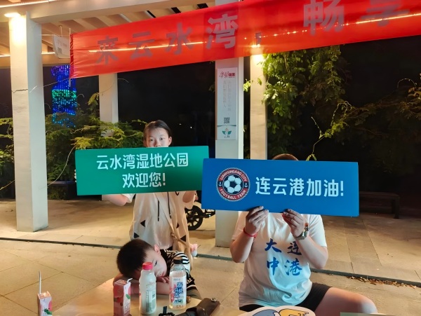 8月3日晚,云臺(tái)農(nóng)場(chǎng)云荷廣場(chǎng)的戶外大屏前熱鬧非凡,連云港對(duì)戰(zhàn)泰州的直播讓這里變成了球迷的聚集地。沒(méi)有花哨的裝飾,卻擋不住大家對(duì)足球的熱情。