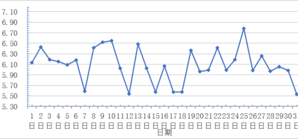 12月,全國重點監(jiān)測農(nóng)產(chǎn)品批發(fā)市場香蕉總交易量達2.4萬噸,同比下降14.3%,環(huán)比基本持平;總交易價值13441.7萬元,同比下降20.3%,環(huán)比下降7.0%。日平均價格最高為6.8元/千克,最低為5.5元/千克,全月平均價格為6.1元/千克,同比上漲5.2%,環(huán)比下降4.7%(每日價格變化如圖)。