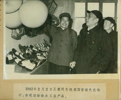 1975年春,湖光農場經濟陷入蕭條。當王震視察中看到倒塌的豬欄、損毀的雞場、枯黃的橡膠樹時,他鼓勵大家:“烏云總會散去的,我們要挺起腰桿來,一手恢復多種經營,一手搞副食品加工,為城市服務……”1981年,他再次視察農場時指示:希望湖光農場在農工商綜合經營方面帶好頭,做個榜樣。