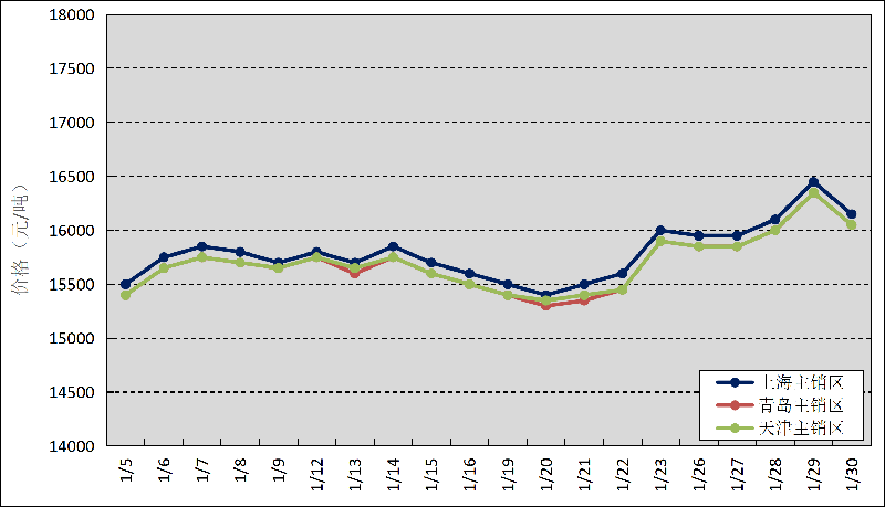圖1  2026年1月國(guó)內(nèi)主銷(xiāo)區(qū)天然橡膠價(jià)格走勢(shì)