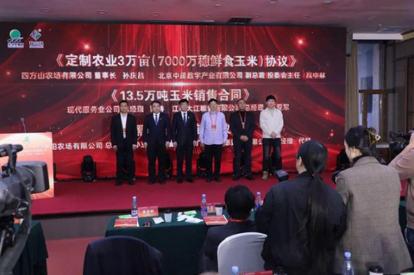 此次推介會(huì),哈爾濱有限公司以資源資產(chǎn)、文化旅游、品牌建設(shè)和產(chǎn)業(yè)配套等方面為主要內(nèi)容,對(duì)“和農(nóng)場(chǎng)”品牌產(chǎn)品、“四區(qū)”建設(shè)及資源資產(chǎn)一體化、農(nóng)文旅融合發(fā)展一體化平臺(tái)產(chǎn)業(yè)、賓館產(chǎn)業(yè)集群及洗滌工廠進(jìn)行推介,并與黑龍江省企業(yè)發(fā)展促進(jìn)會(huì)、北京中健數(shù)字產(chǎn)業(yè)有限公司、黑龍江省體育旅游融合發(fā)展促進(jìn)會(huì)等72家企業(yè)及商會(huì)簽訂了《定制農(nóng)業(yè)3萬(wàn)畝(7000萬(wàn)穗鮮食玉米)協(xié)議》《13.5萬(wàn)噸玉米銷售合同》《黑稻產(chǎn)業(yè)供銷協(xié)議》《農(nóng)文旅融合發(fā)展促進(jìn)協(xié)議》《快消品銷售協(xié)議》等協(xié)議。