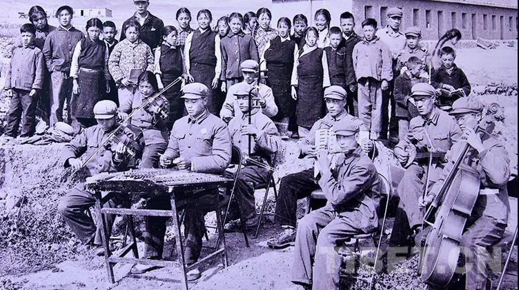 圖為林周農(nóng)場(chǎng)宣傳隊(duì)正在排練器樂小合奏 翻拍:王媛媛