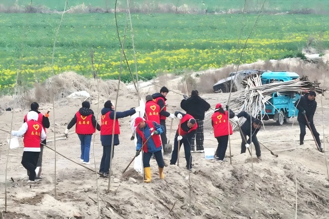 植樹現(xiàn)場(chǎng)一派熱火朝天的勞作景象。一捆捆楊樹苗整齊碼放,靜待扎根沃土。林業(yè)公司技術(shù)人員詳細(xì)講解樹苗種植要點(diǎn)后,志愿者們隨即分組協(xié)作,三人一組、四人一隊(duì),或扶苗定位、或填土穩(wěn)固、或提水澆灌,每個(gè)環(huán)節(jié)嚴(yán)謹(jǐn)細(xì)致、有條不紊。身著鮮艷志愿紅馬甲的志愿者們穿梭其間,與新栽樹苗相映成趣,構(gòu)成春日里一道靈動(dòng)的風(fēng)景線。大家熱情高漲、干勁十足,臉上洋溢著勞作的喜悅,歡聲笑語(yǔ)與鐵鍬鏟土的聲響交織,奏響了植綠護(hù)綠的春日序曲。