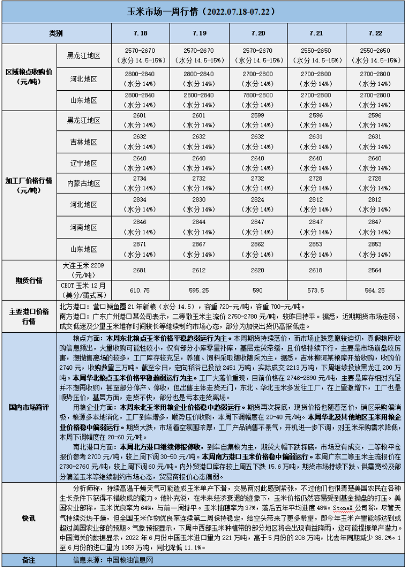 天然橡膠、大豆、玉米市場(chǎng)一周行情(2022.07.18-07.22)