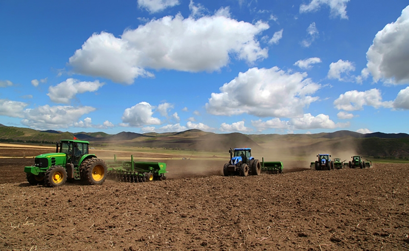 你看,春天的腳步在牧場走過,消融了山間的冰雪、褪去了一冬的寒冷。清早起來,雪白的羊群尋著泛綠的青草漫步在山坡上,星星點點、悠然自得,仿佛天上的白云倒映下的影子。小小的牧場,在這一方寧靜的山水之間,伴著裊裊升起的炊煙也慢慢變得生動活潑起來。北方的春天,來得遲去得快。在春的尾巴,隆隆的機聲打破了田野許久的沉寂,一臺臺或紅色或綠色的大型拖拉機牽引著播種機、鎮(zhèn)壓器往來穿梭,它們用鐵犁劃開沉睡一冬的土地,讓泥土的清香盡情宣泄在天地之間,是農(nóng)墾人在大自然中演奏出的豐收序曲。