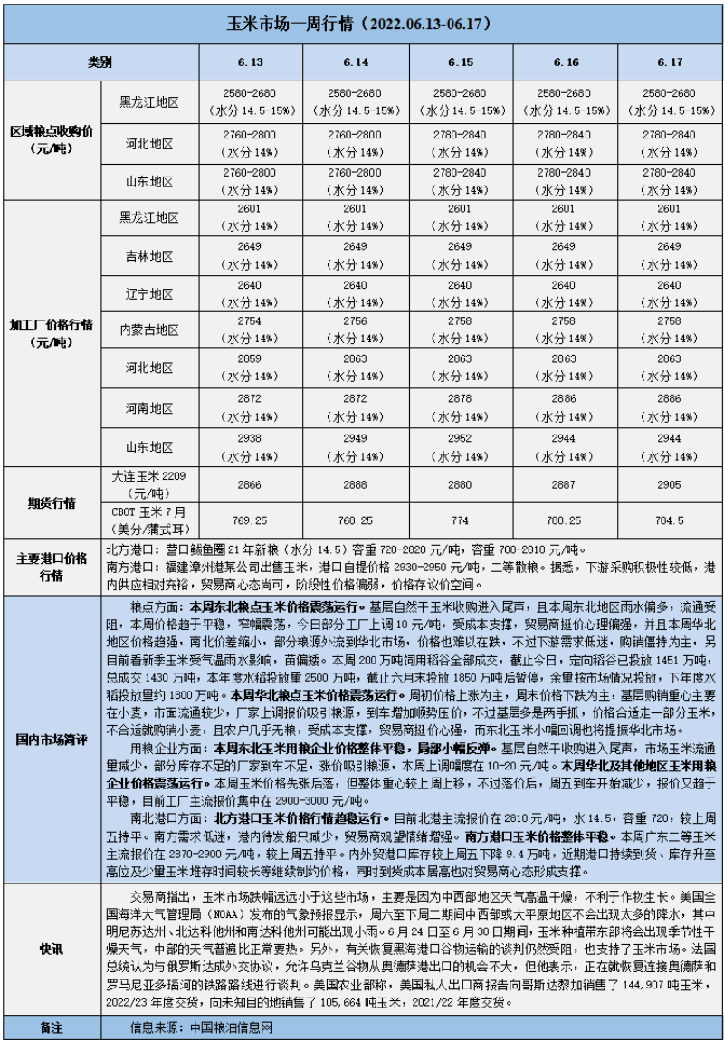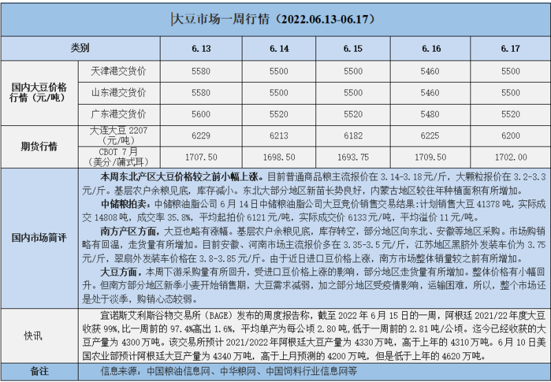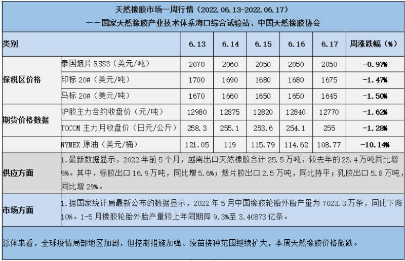 天然橡膠、大豆、玉米市場一周行情(2022.06.13-06.17)