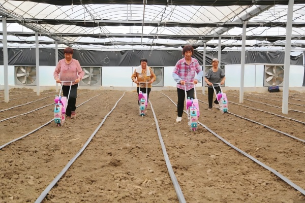 走進(jìn)大棚,只見(jiàn)一臺(tái)臺(tái)小巧靈活的播種機(jī)在工作人員的操控下穿梭于田間。紅色醒目的播輪在地上行走自如,發(fā)出陣陣歡快的聲響,將一粒粒黑豆種下。這臺(tái)機(jī)器以其輕便快捷的特點(diǎn),大大提高了播種效率?!八粌H能夠?qū)崿F(xiàn)精準(zhǔn)播種,確保每顆豆子都能以相同的間距和深度植入土壤,還為后續(xù)的統(tǒng)一管護(hù)提供了極大的便利?!痹诂F(xiàn)場(chǎng),技術(shù)員鄒品才介紹。