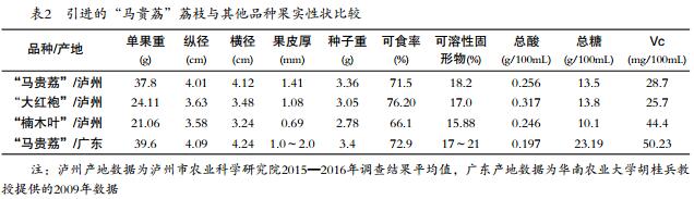 摘 要:“馬貴荔”荔枝是從廣東省高州市馬貴鎮(zhèn)選育出的特遲熟荔枝品種,2013年以高接換種方式引入四川省瀘州市江陽區(qū)黃艤鎮(zhèn)。引種4年后表現(xiàn)為適應(yīng)瀘州地區(qū)氣候條件,枝條生長快速,易成花著果,成熟期8月中旬,比當?shù)刂髟缘摹按蠹t袍”荔枝和晚熟的“楠木葉”荔枝分別晚30d左右、7d左右。引進的“馬貴荔”荔枝果實性狀及品質(zhì)基本達到原產(chǎn)地水平,初步判定引種成功。